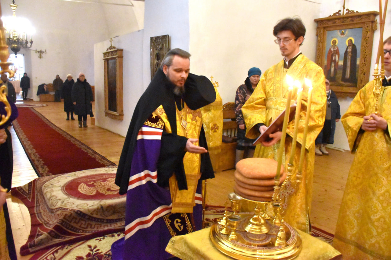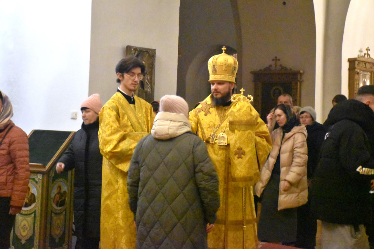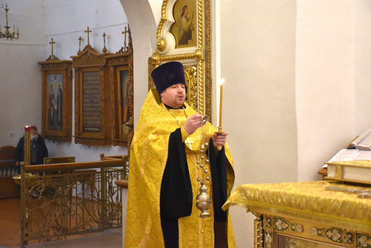 14 февраля 2026 года, в канун Недели мясопустной, о Страшном Суде, и празднования Сретения Господа Бога и Спаса нашего Иисуса Христа, епископ Вяземский и Гагаринский Алексий совершил всенощное бдение в Свято-Троицком соборе города Вязьмы.
