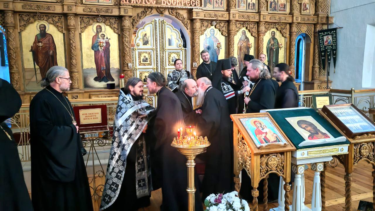 Владыка Алексий произнес архипастырское слово и первым испросил прощения у сослужащего духовенства и прихожан. Далее, следуя традиции, все присутствующие в храме попросили прощения друг у друга.