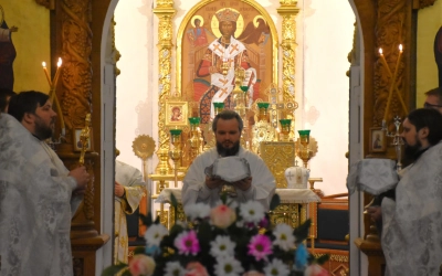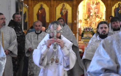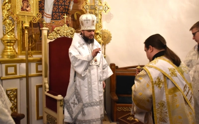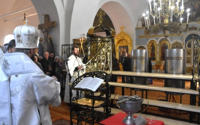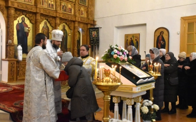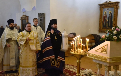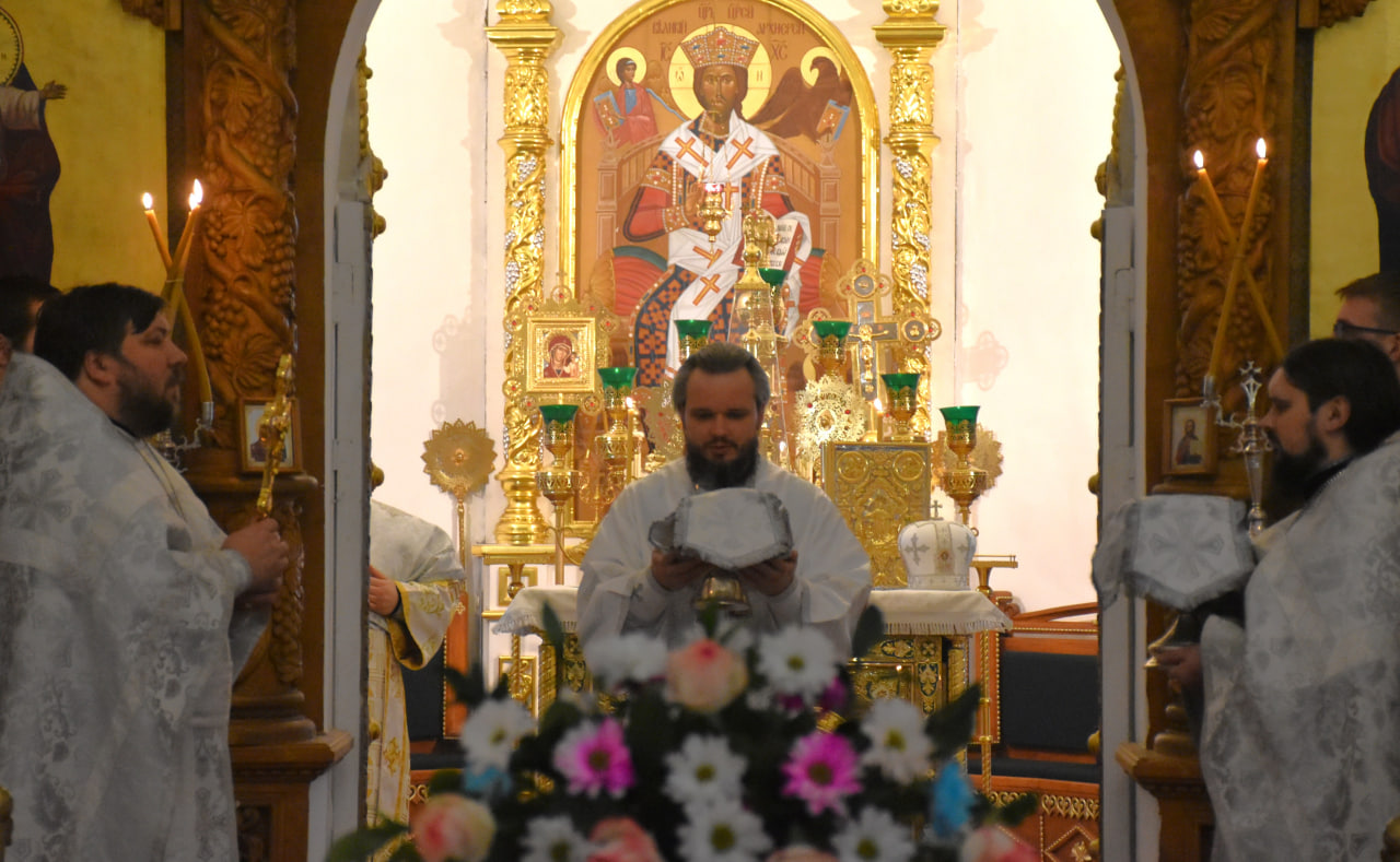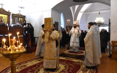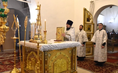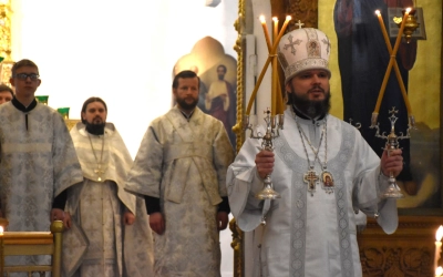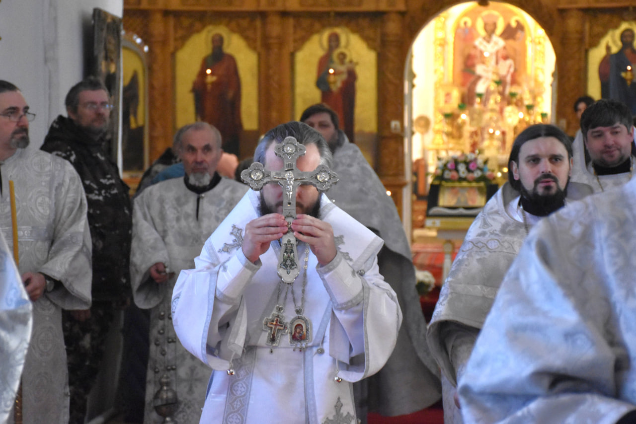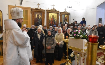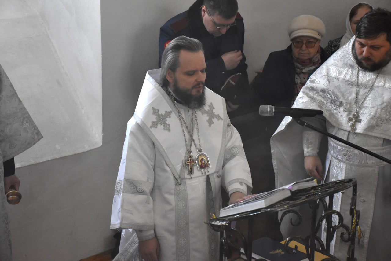 Архипастырю сослужили: настоятель Свято-Троицкого кафедрального собора иерей Александр Курмелёв, иерей Максим Мамонов, иерей Александр Жухарев и диакон Евгений Ткач.