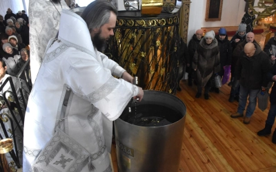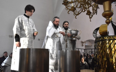 Завершив Божественную литургию, Владыка Алексий совместно с клириками собора возглавил чин Великого освящения воды, окропил молящихся крещенской водой и совершил славление празднику Богоявления, после чего обратился к собравшимся с архипастырским словом.
