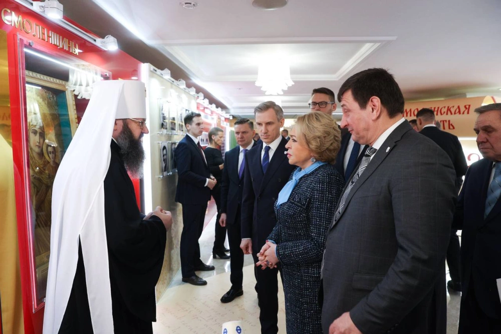 7 марта 2025 года перед пленарным заседанием Губернатор Смоленской области Василий Николаевич Анохин, председатель областной Думы Игорь Васильевич Ляхов и Глава Смоленской митрополии митрополит Смоленский и Дорогобужский Исидор рассказали председателю Совета Федерации Валентине Ивановне Матвиенко и посетителям выставки Смоленской области в стенах верхней палаты парламента о многовековой истории нашего региона.