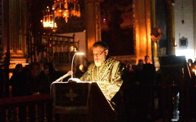 Вечером 5 марта 2025 года, в среду первой седмицы Великого поста, митрополит Смоленский и Дорогобужский Исидор совершил великое повечерие с чтением Великого покаянного канона преподобного Андрея Критского в Свято-Успенском соборе города Смоленска.