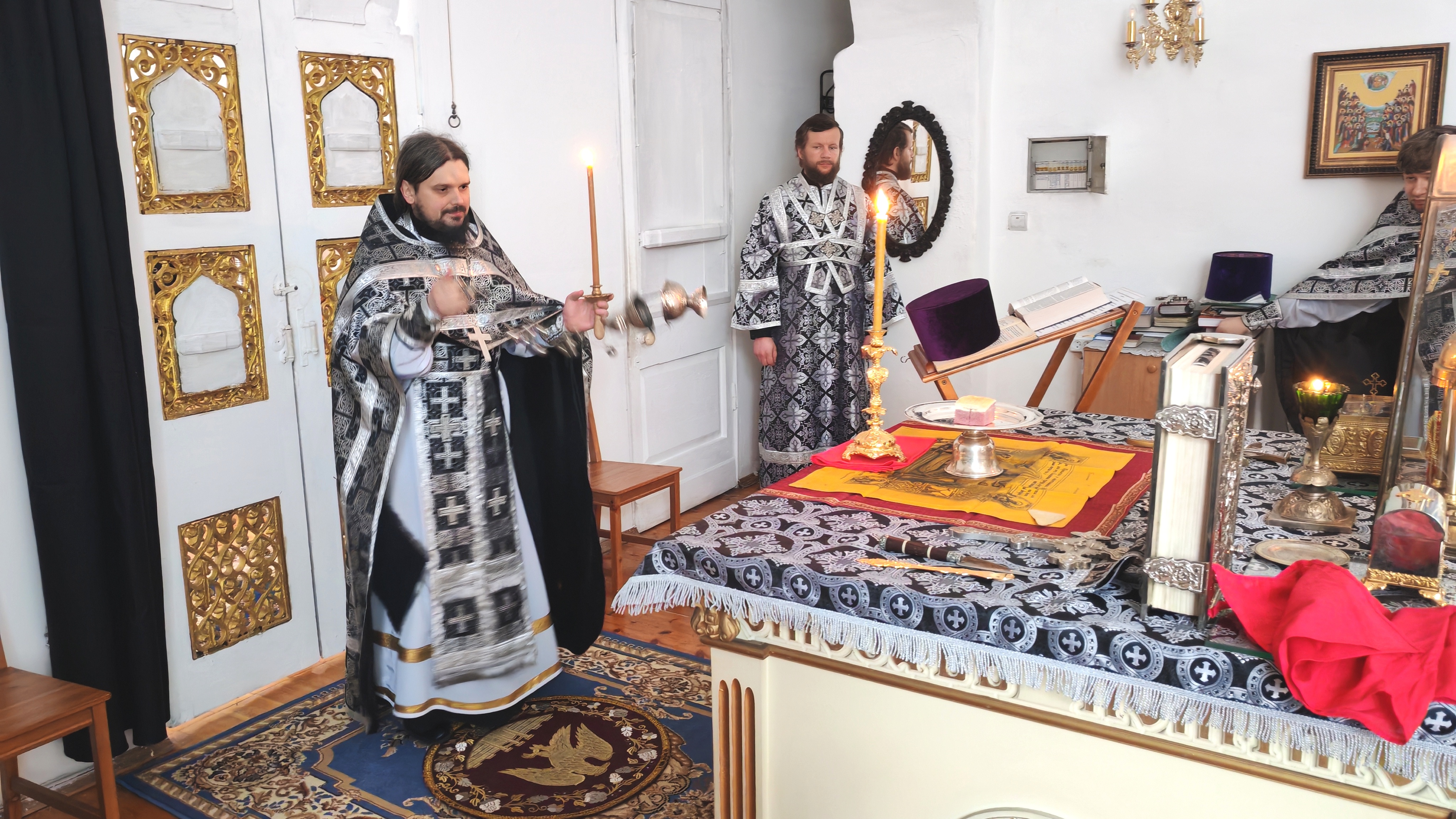 Затем Владыка совершил первую в этом году литургию Преждеосвящённых Даров.