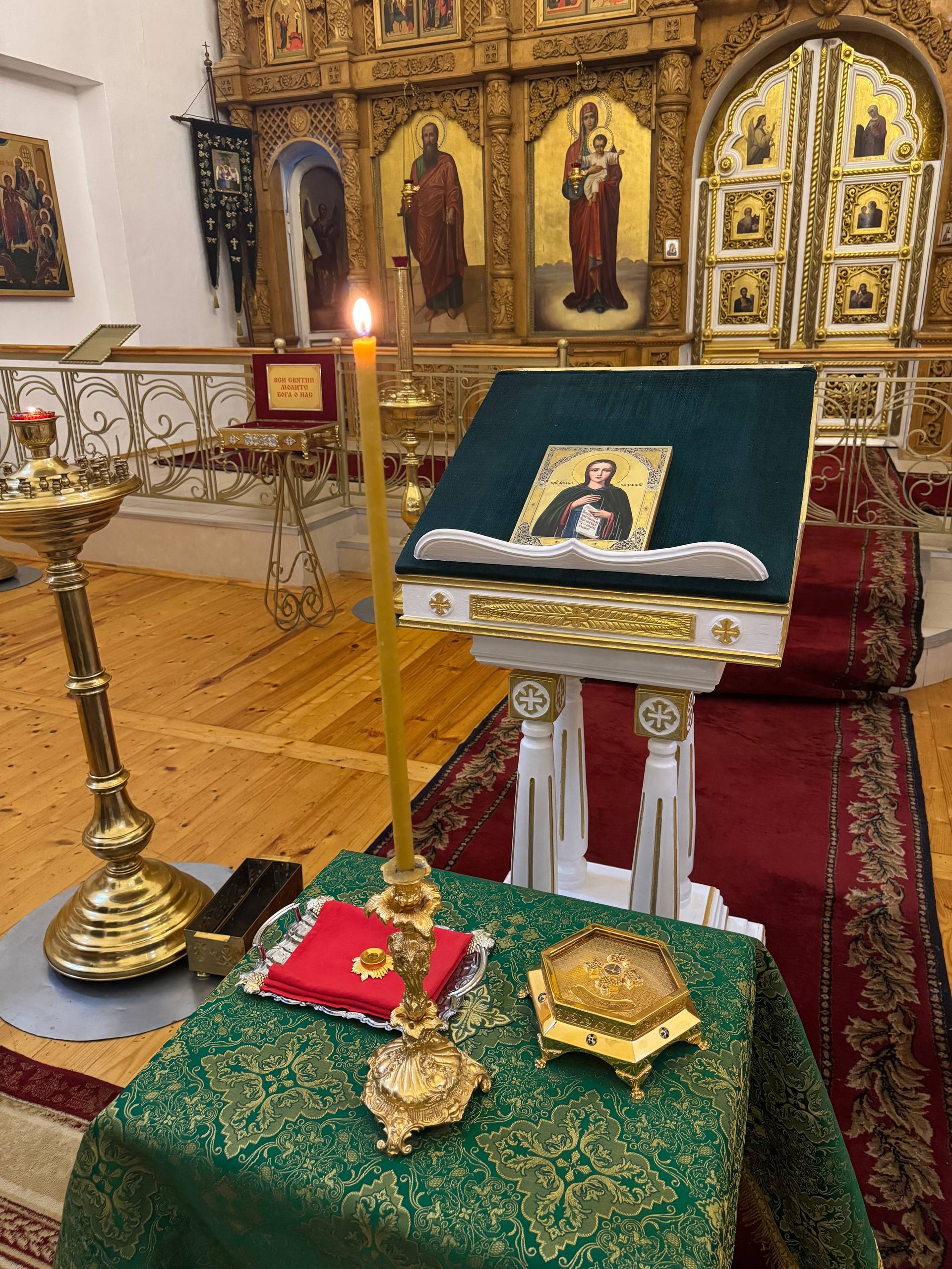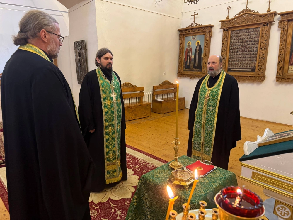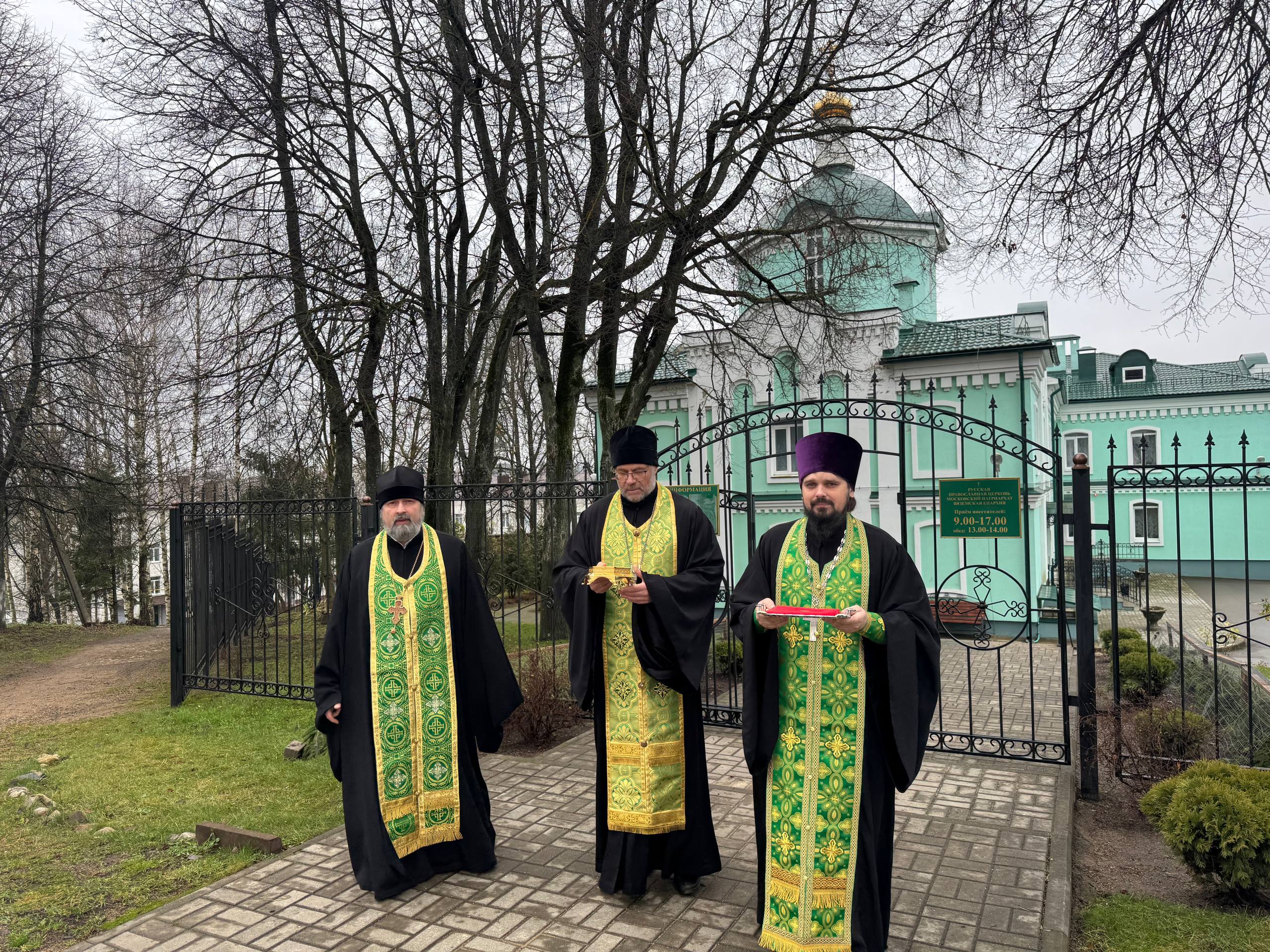 Молебен перед святынями возглавил благочинный Угранского округа, настоятель Свято-Троицкого собора города Вязьмы иерей Александр Курмелев. В молебне приняли участие секретарь Вяземского епархиального управления протоиерей Олег Переверзев, а также благочинный Вяземского округа протоиерей Валерий Калинин.