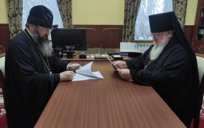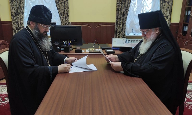 31 октября 2024 года в Вяземском Епархиальном управлении состоялось подписание Акта приемки-передачи дел, которое происходит по Уставу Русской Православной Церкви в случае назначения на вакантную кафедру нового епархиального архиерея или временного управляющего епархией.