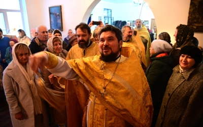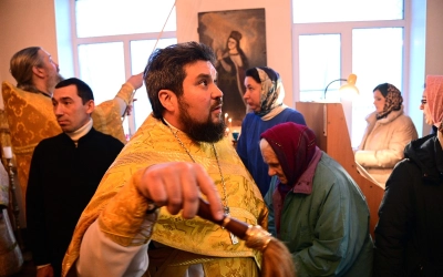 Архипастырю сослужили благочинный Смоленского районного округа протоиерей Роман Павлишов, настоятель храма Архангела Михаила г. Смоленска протоиерей Павел Петровский, настоятель Покровского храма иерей Владимир Сысоев, клирики благочиния.