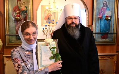 По окончании Литургии Высокопреосвященнейший Владыка удостоил священнослужителей и мирян епархиальных наград.