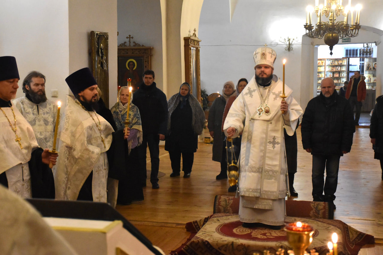 17 января 2026 года, в канун Недели перед Богоявлением, епископ Вяземский и Гагаринский Алексий совершил Всенощное бдение в Свято-Троицком соборе города Вязьмы.