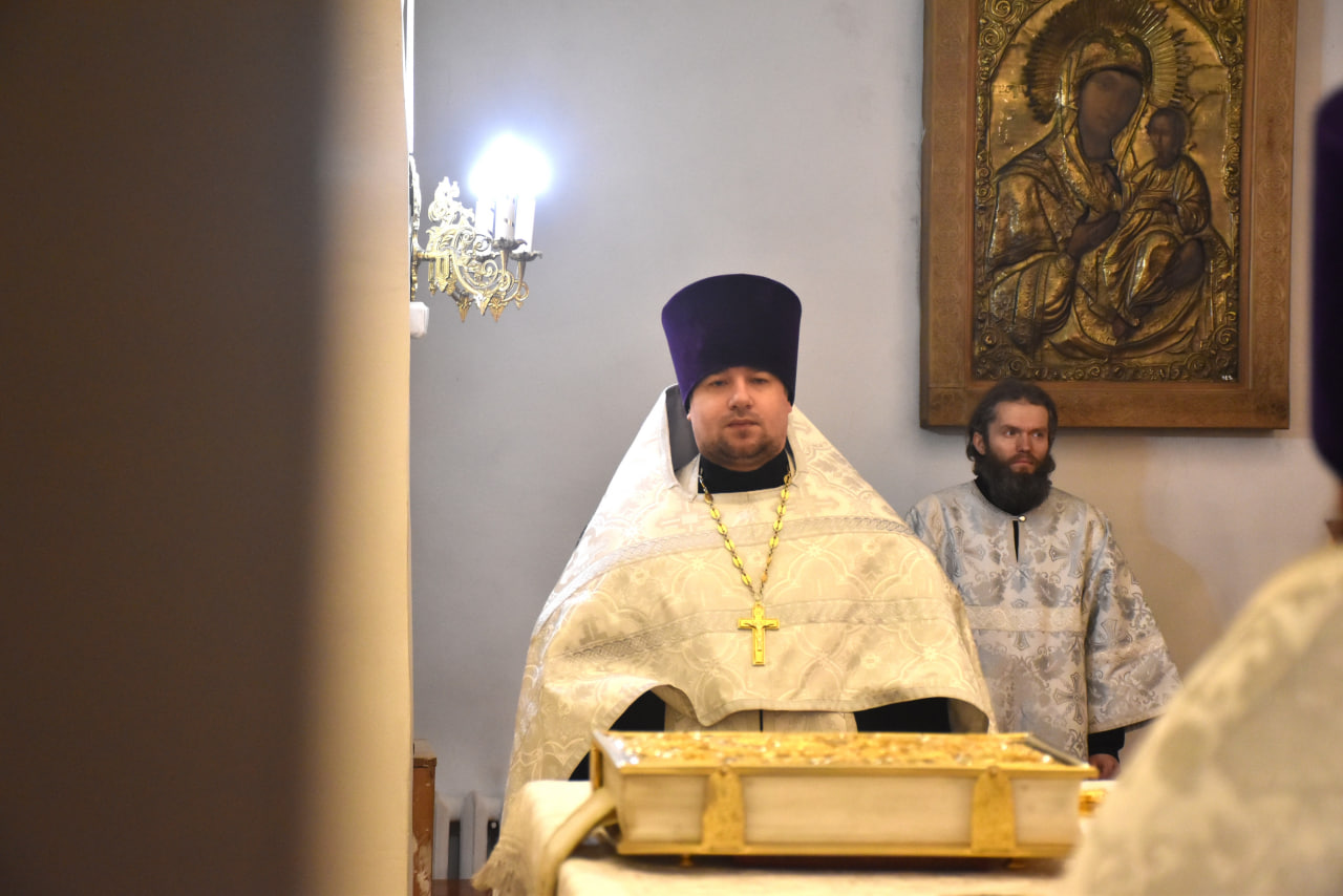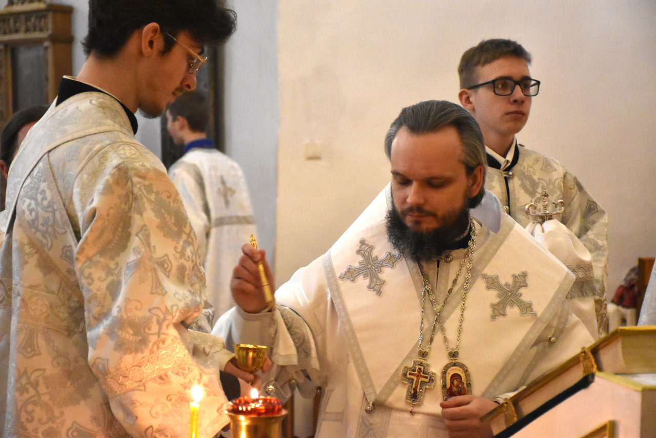 Владыке сослужили настоятель Свято-Троицкого кафедрального собора иерей Александр Курмелёв, а также штатные клирики собора: иерей Максим Мамонов, иерей Владимир Покатов и диакон Евгений Ткач.