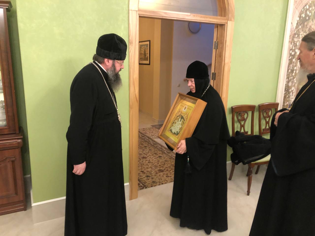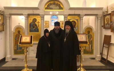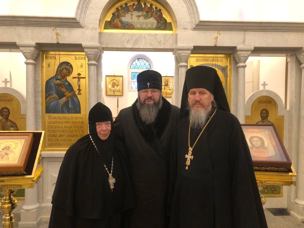 Высокопреосвященнейший митрополит Исидор, настоятельница монастыря игумения Ангелина (Нестерова) и старший священник Спасо-Богородицкого Одигитриевского монастыря иеромонах Даниил (Сычёв) обсудили этапы строящегося монастырского надвратного храма, освящение которого состоится уже в ближайшую субботу.