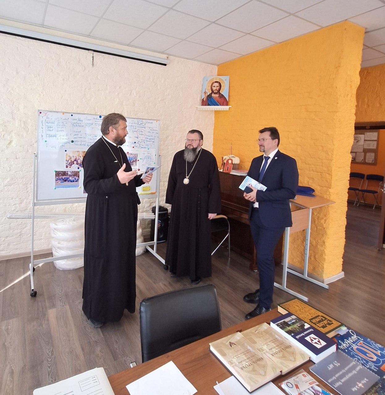 Духовный наставник Центра, иерей Алексий Дубовский провел подробную экскурсию по Духовно-просветительскому центру, в ходе которой Высокопреосвященнейший Владыка Исидор и П.Б. Липатов ознакомились с работой учреждения.