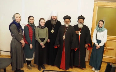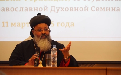 11 марта 2025 года в Смоленской Православной Духовной семинарии состоялась встреча студентов с делегацией Маланкарской Церкви. В состав делегации вошли председатель Отдела внешних церковных связей митрополит Делийский Юханон Мар Деметриос и митрополит Куннамкуламский Геваргис Мар Юлиос.