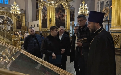 Также в этот день с экскурсией Александр Владимирович Попов, руководитель епархиального отдела физической культуры и спорта протоиерей Андрей Мельничук и гости города посетили Успенский собор.