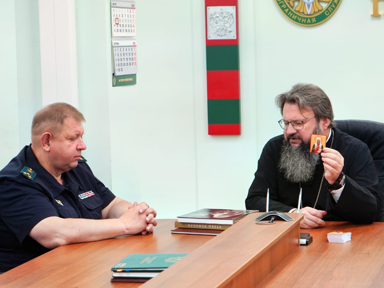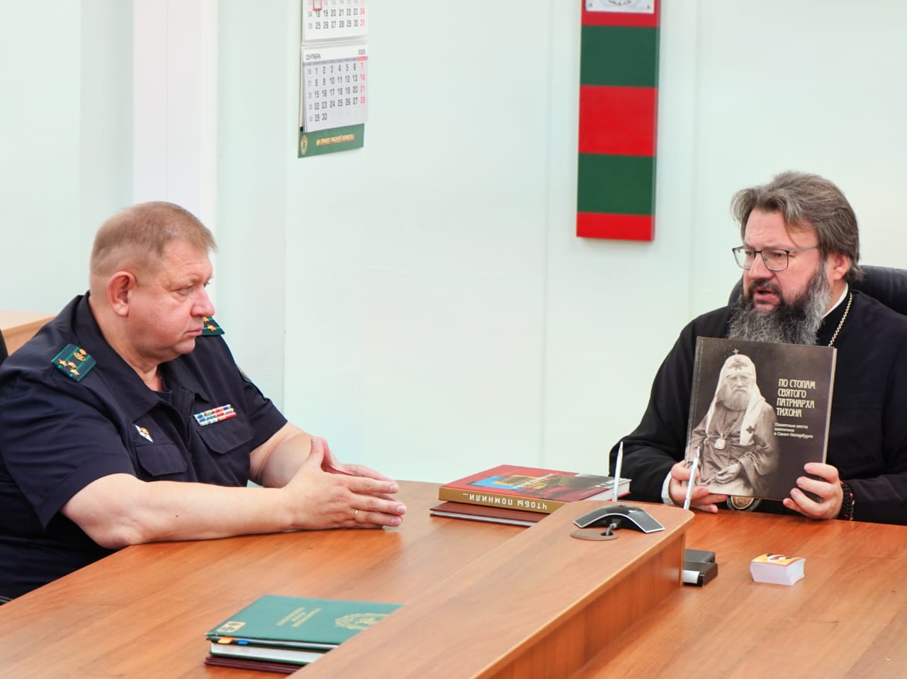 По окончании беседы всем сотрудникам Пограничного управления были розданы карманные иконы святителя Тихона, а в библиотеку организации переданы книги о жизни святого и непростом времени для всей православной веры.