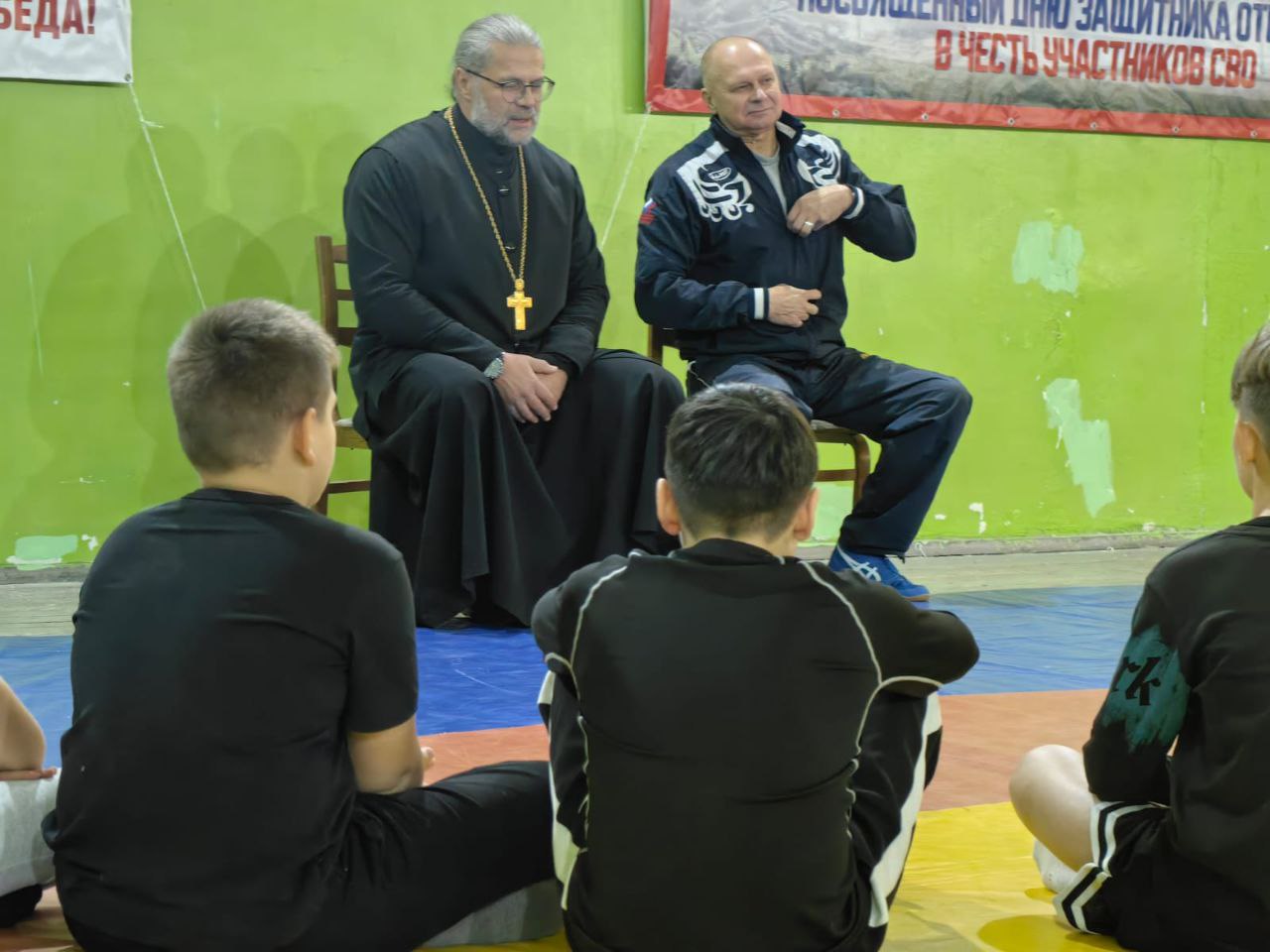Регулярно отец Валерий проводит встречи со спортсменами и рассказывает о главных вопросах в жизни человека, о вере, о необходимости быть сильным — и душевно, и физически.