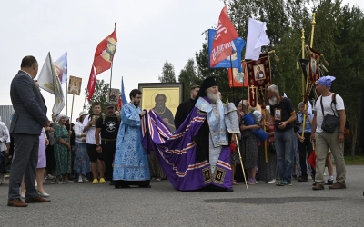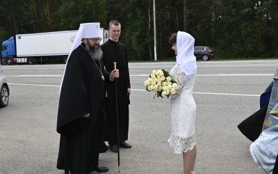 Сегодня участники молитвенного шествия прибыли в Руднянский район Смоленской области. Встретить паломников на границе двух государств Беларуси и России прибыли Глава Смоленской митрополии митрополит Смоленский и Дорогобужский Исидор, правящий архиерей Витебской епархии архиепископ Витебский и Оршанский Димитрий, председатель Руднянского окружного Совета депутатов Людмила Никифоровна Дивакова, Председатель Лиозненского районного Совета депутатов Витебской области Республики Беларусь Сергей Николаевич Шляднев, помощник заместителя председателя Витебского областного исполнительного комитета Сергей Николаевич Фадеенков, духовенство.