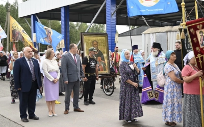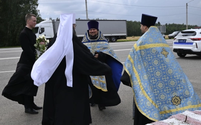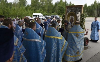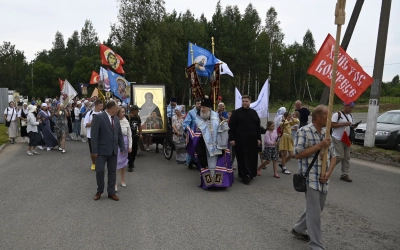 Перед иконой Божией Матери «Одигитрия», принесенной из села Микулина (список XVII века с чудотворного надвратного Смоленского образа Божией Матери «Одигитрия»), был совершен молебен, после которого молящиеся с благоговением приложились к чтимым образам и продолжили шествие.