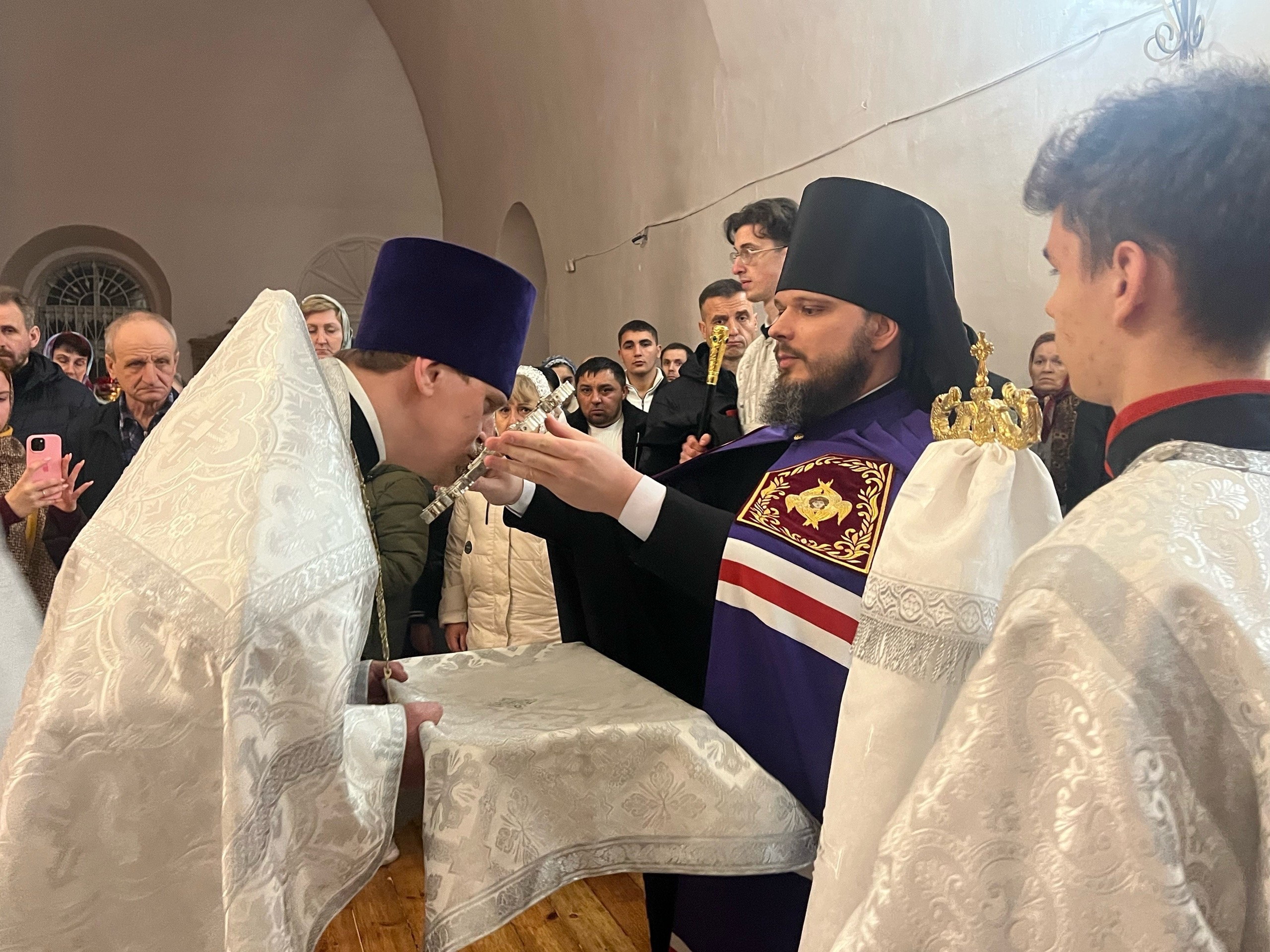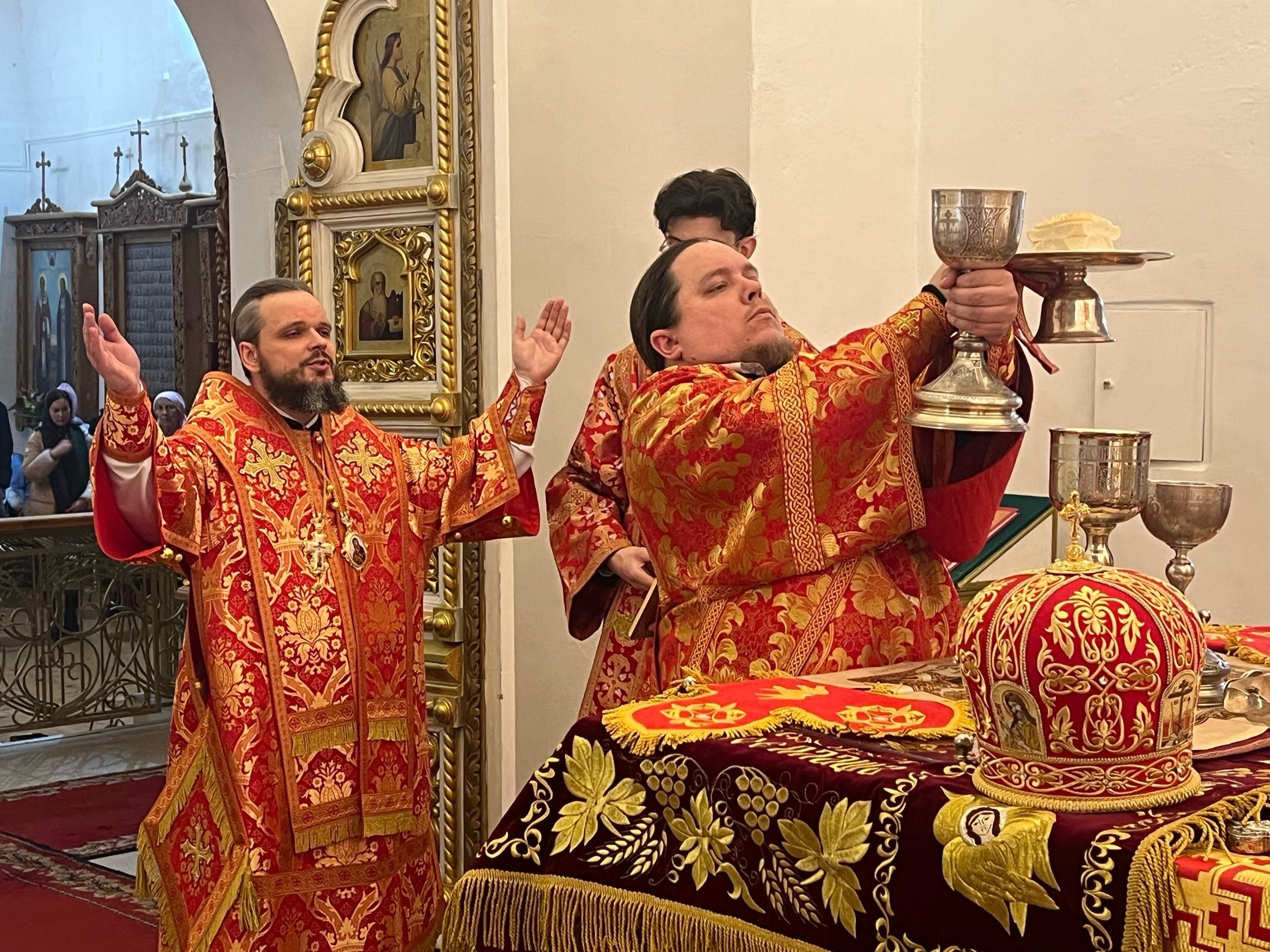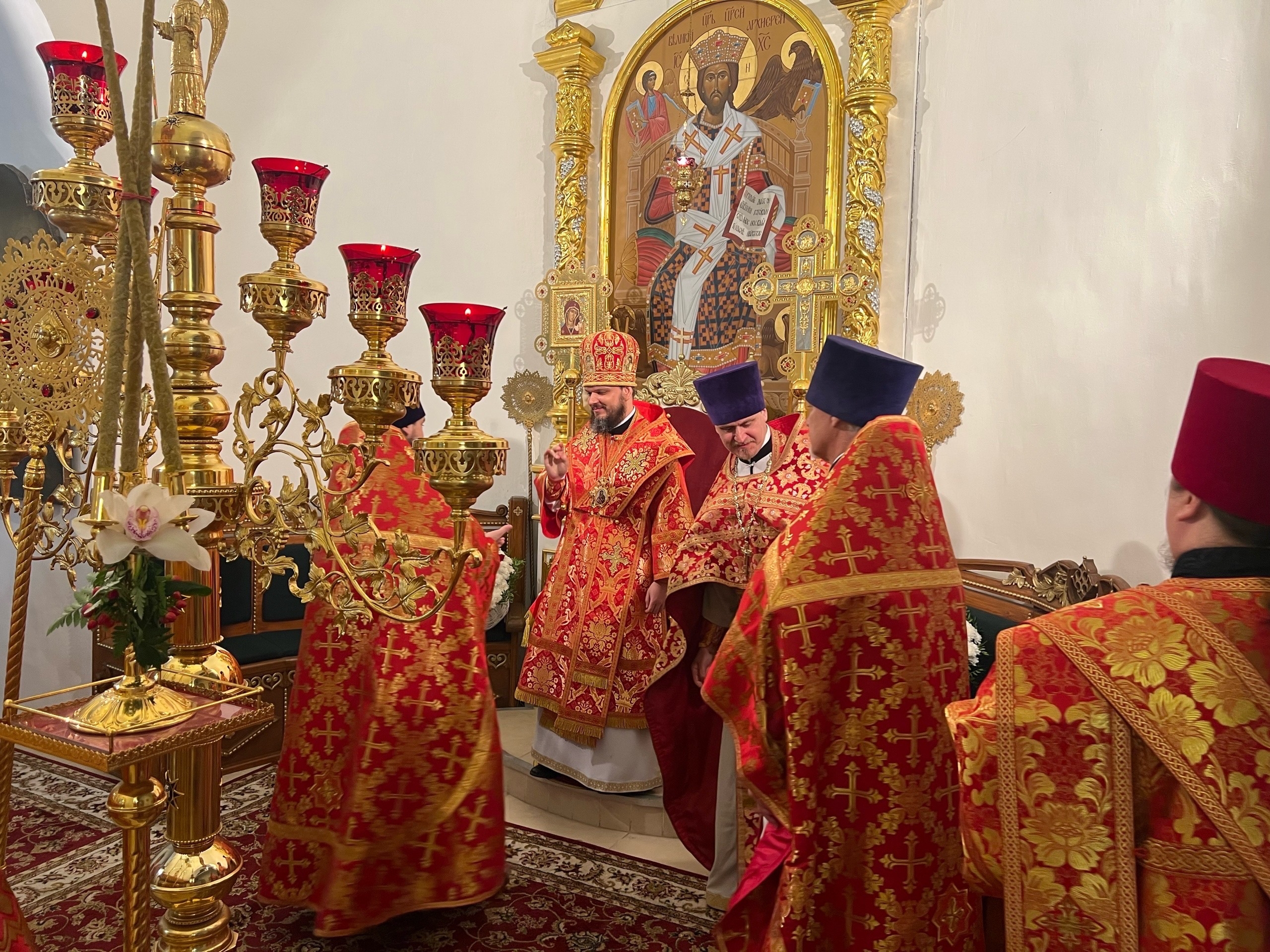 Его Преосвященству сослужили настоятель собора иерей Павел Тарасов, иерей Александр Курмелев, иерей Владимир Покатов, диакон Евгений Ткач.