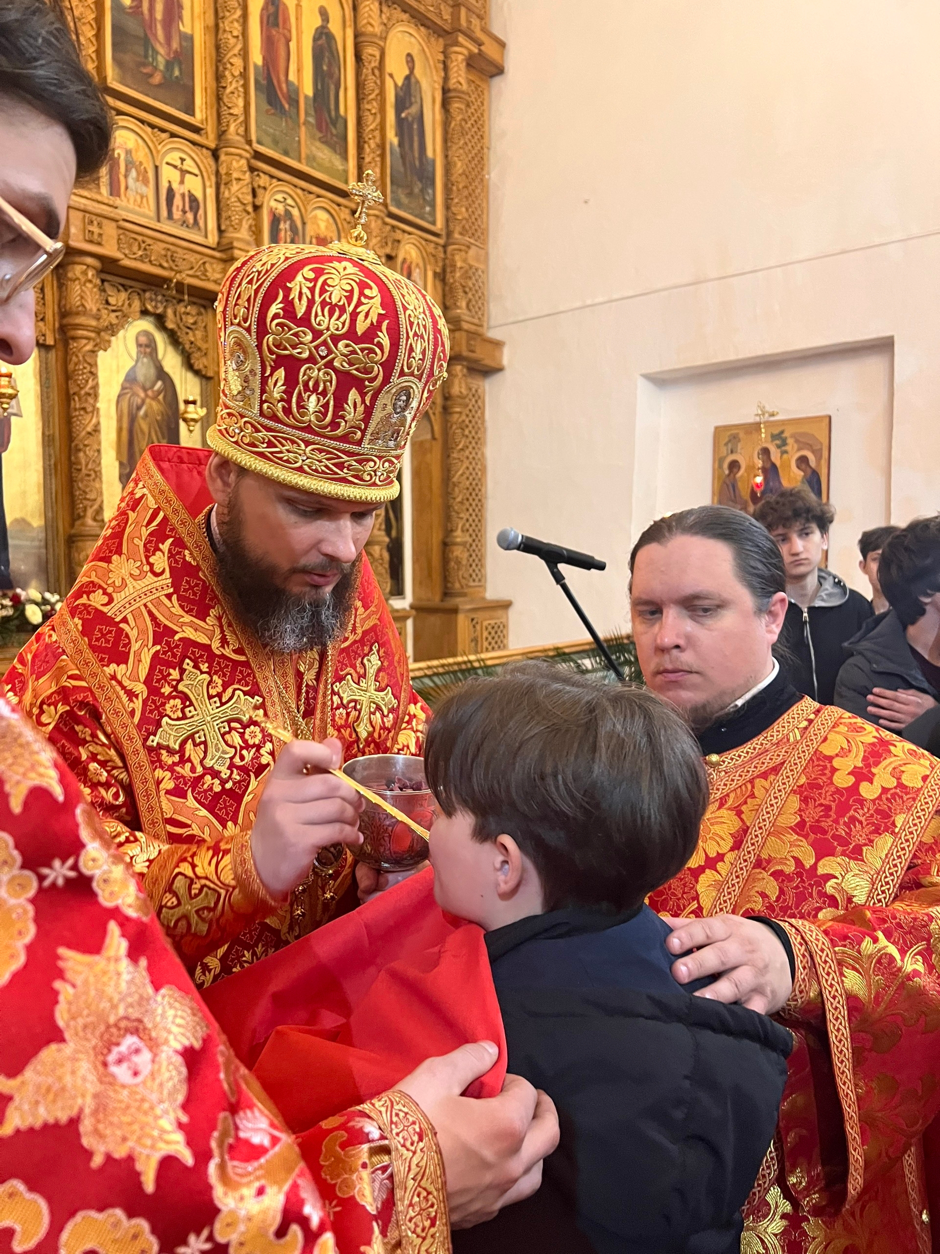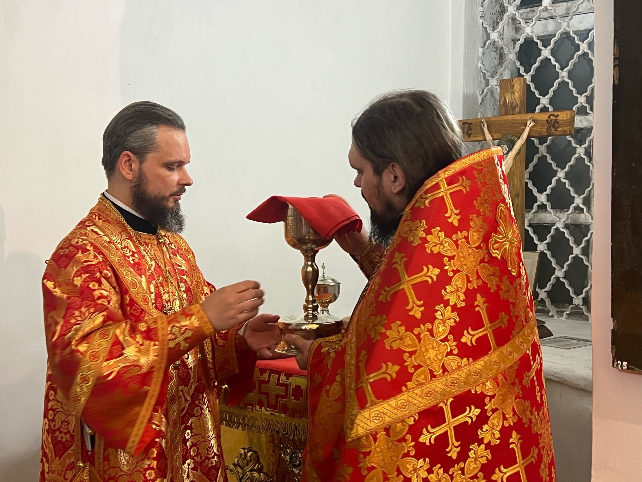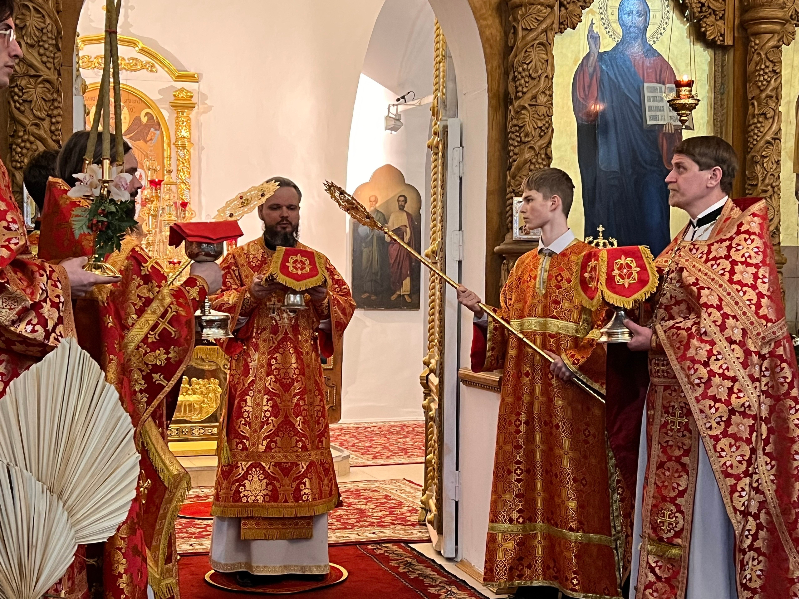 Его Преосвященству сослужили настоятель собора иерей Павел Тарасов, иерей Александр Курмелев, иерей Владимир Покатов, диакон Евгений Ткач.