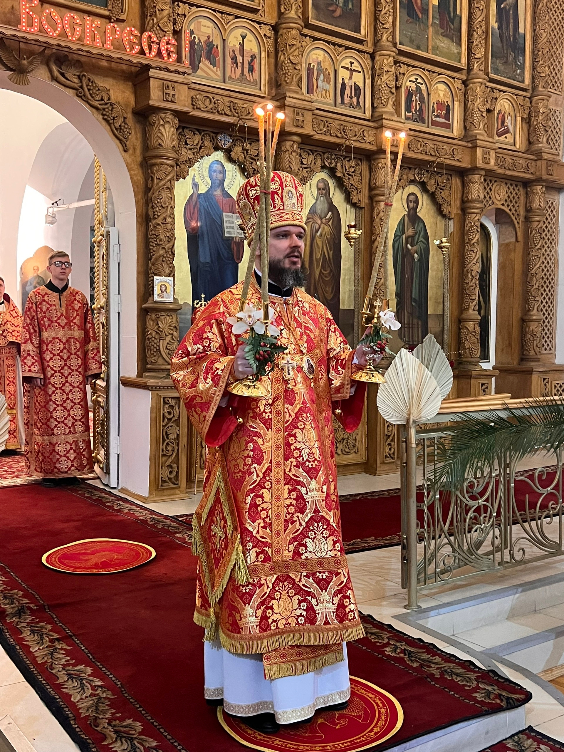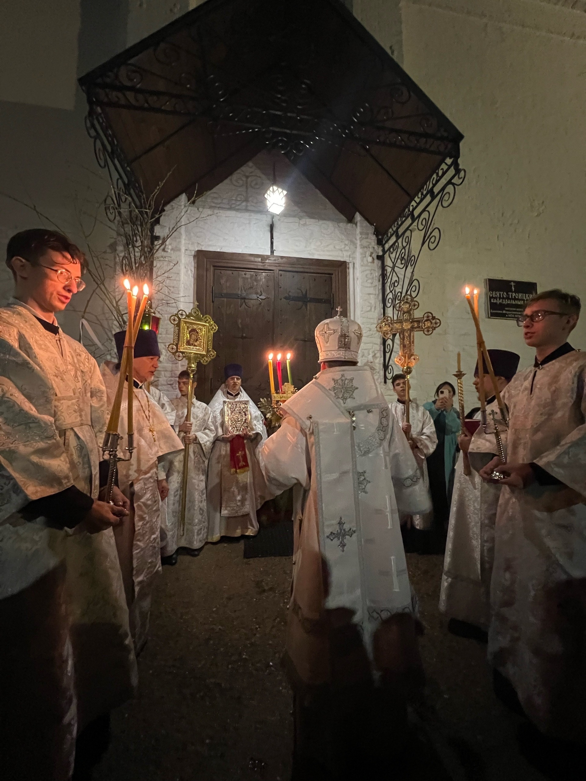 В ночь с 11 на 12 апреля 2026 года, в праздник Светлого Христова Воскресения, епископ Вяземский и Гагаринский Алексий возглавил Пасхальные богослужения в Свято-Троицком кафедральном соборе города Вязьмы.