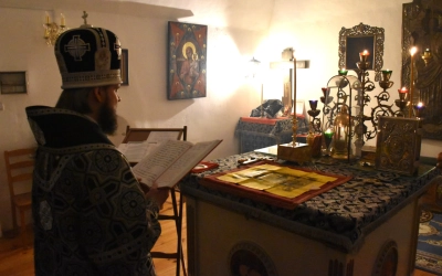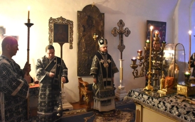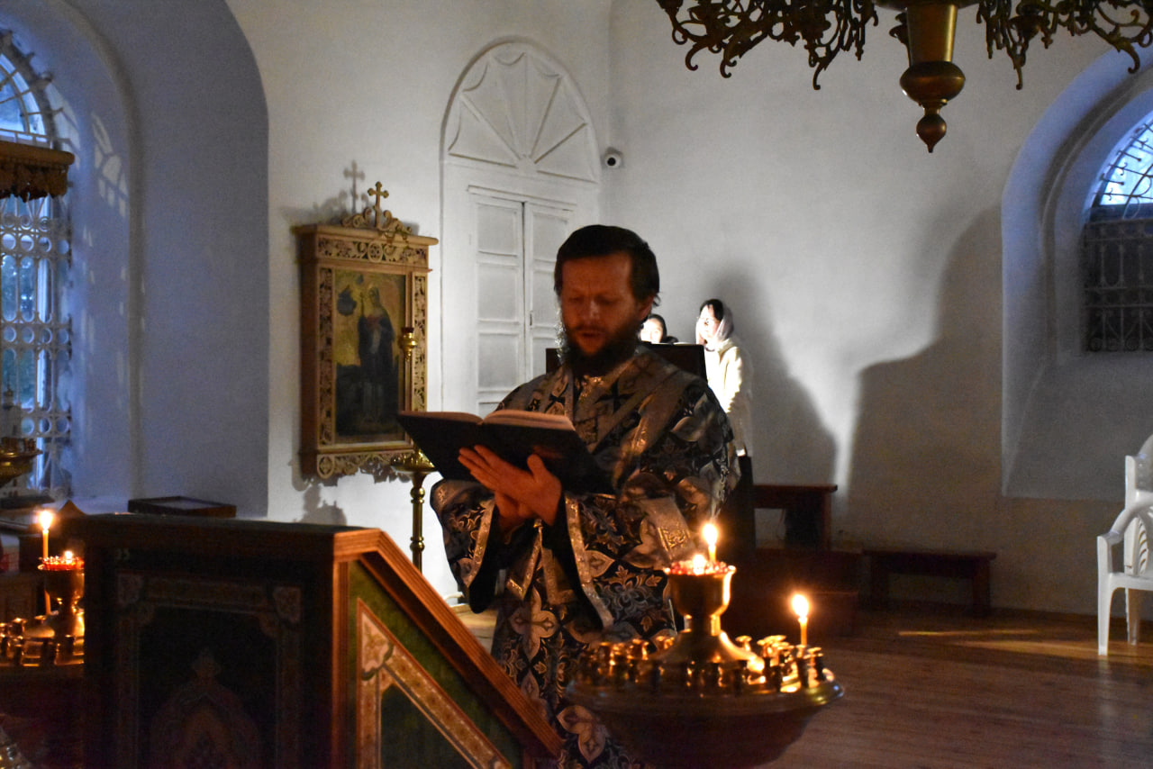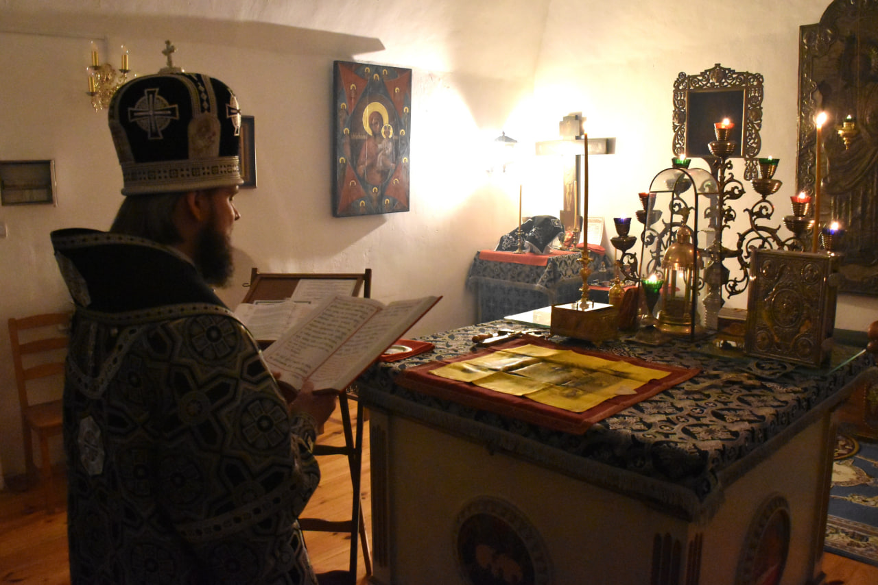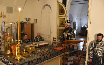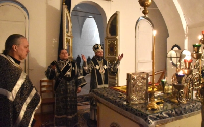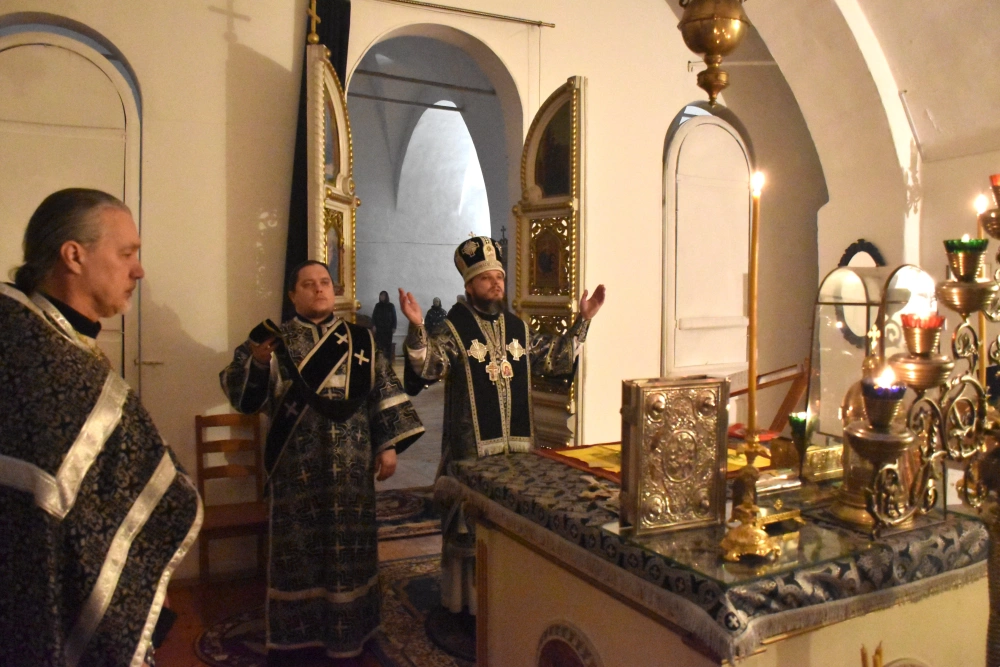Его Преосвященству сослужили: настоятель кафедрального собора иерей Александр Курмелев, иерей Владимир Покатов, диакон Евгений Ткач.