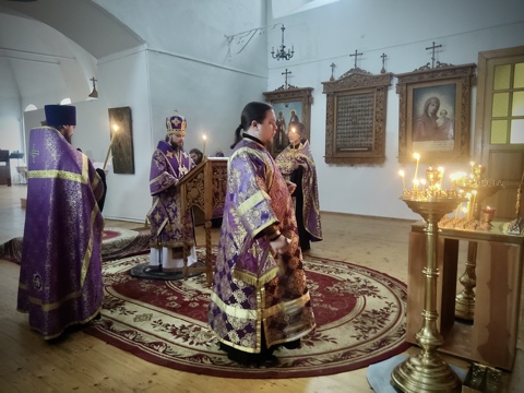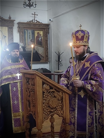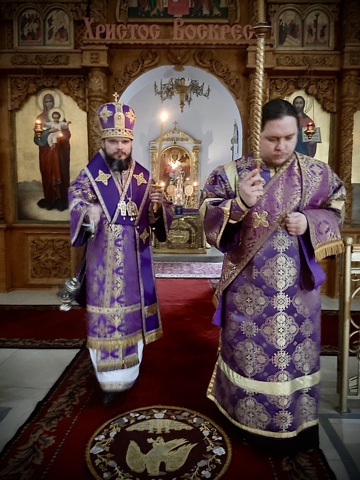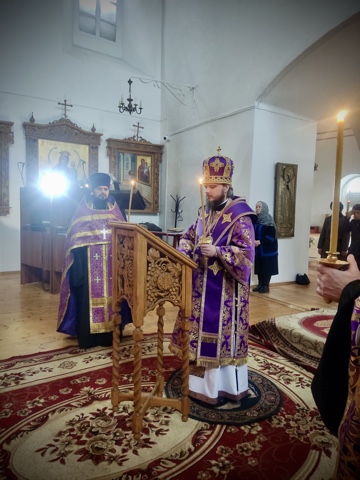 Его Преосвященству сослужили настоятель кафедрального собора иерей Александр Курмелев, иерей Владимир Покатов, диакон Евгений Ткач.