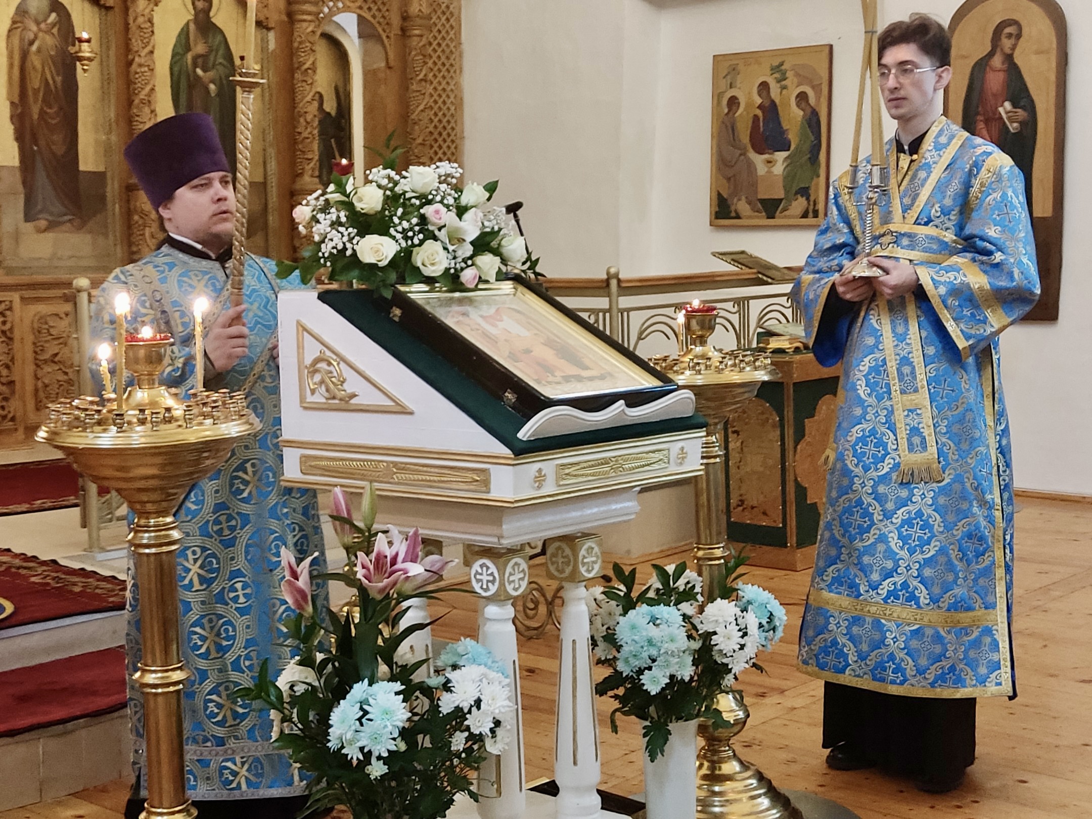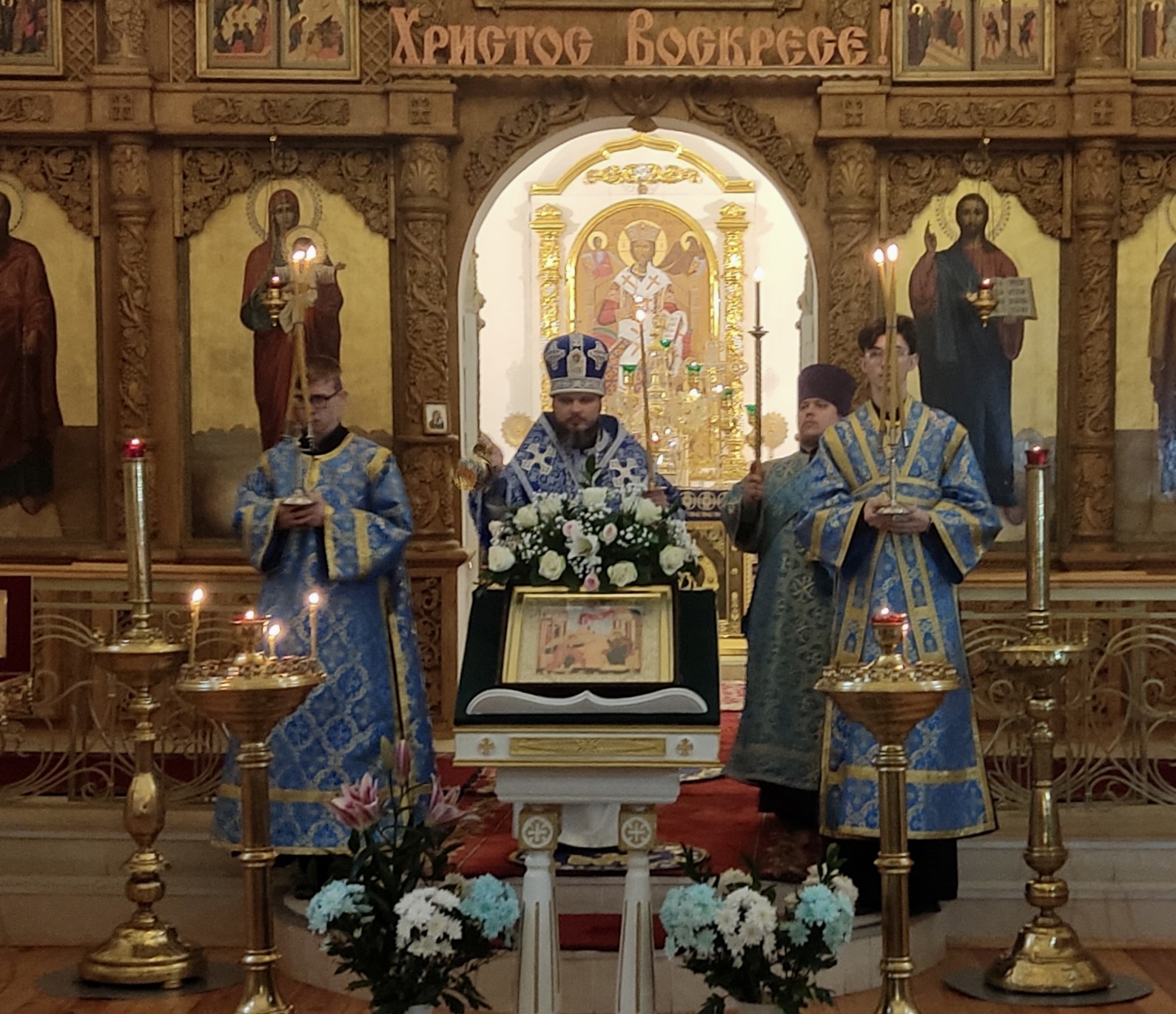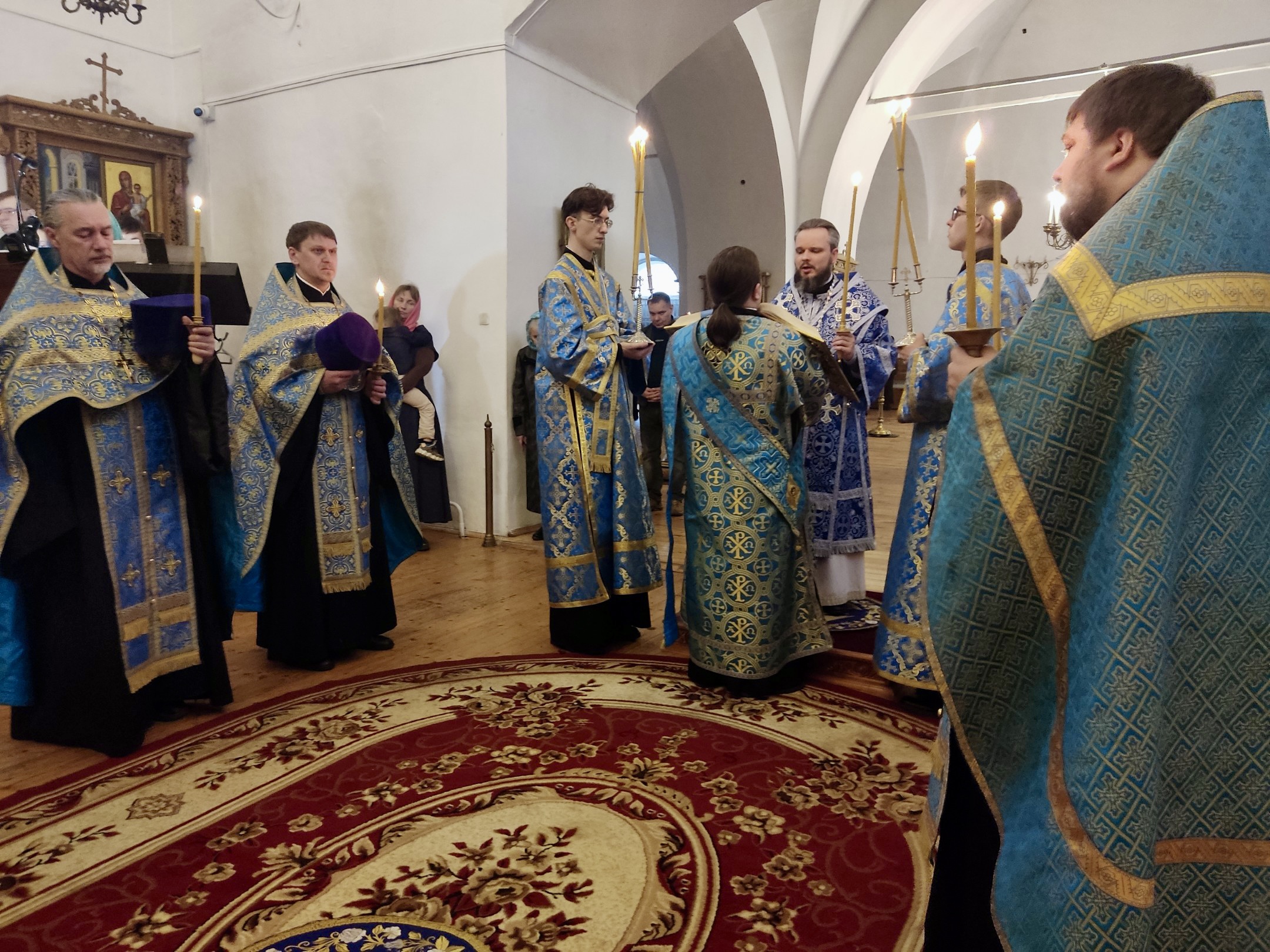 Его Преосвященству сослужили настоятель собора иерей Павел Тарасов, иерей Александр Курмелев, иерей Владимир Покатов, иерей Александр Жухарев, диакон Евгений Ткач.