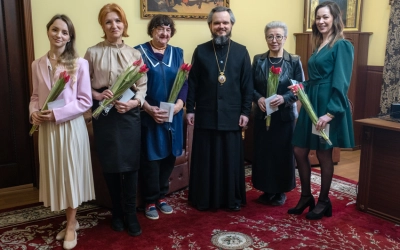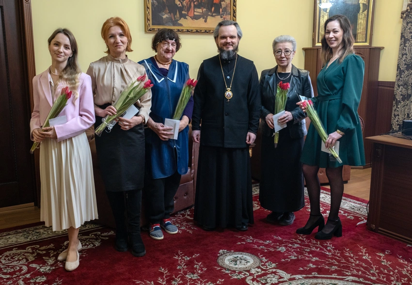 6 марта 2026 года в Вяземском епархиальном управлении епископ Вяземский и Гагаринский Алексий поздравил сотрудниц с праздником весны.