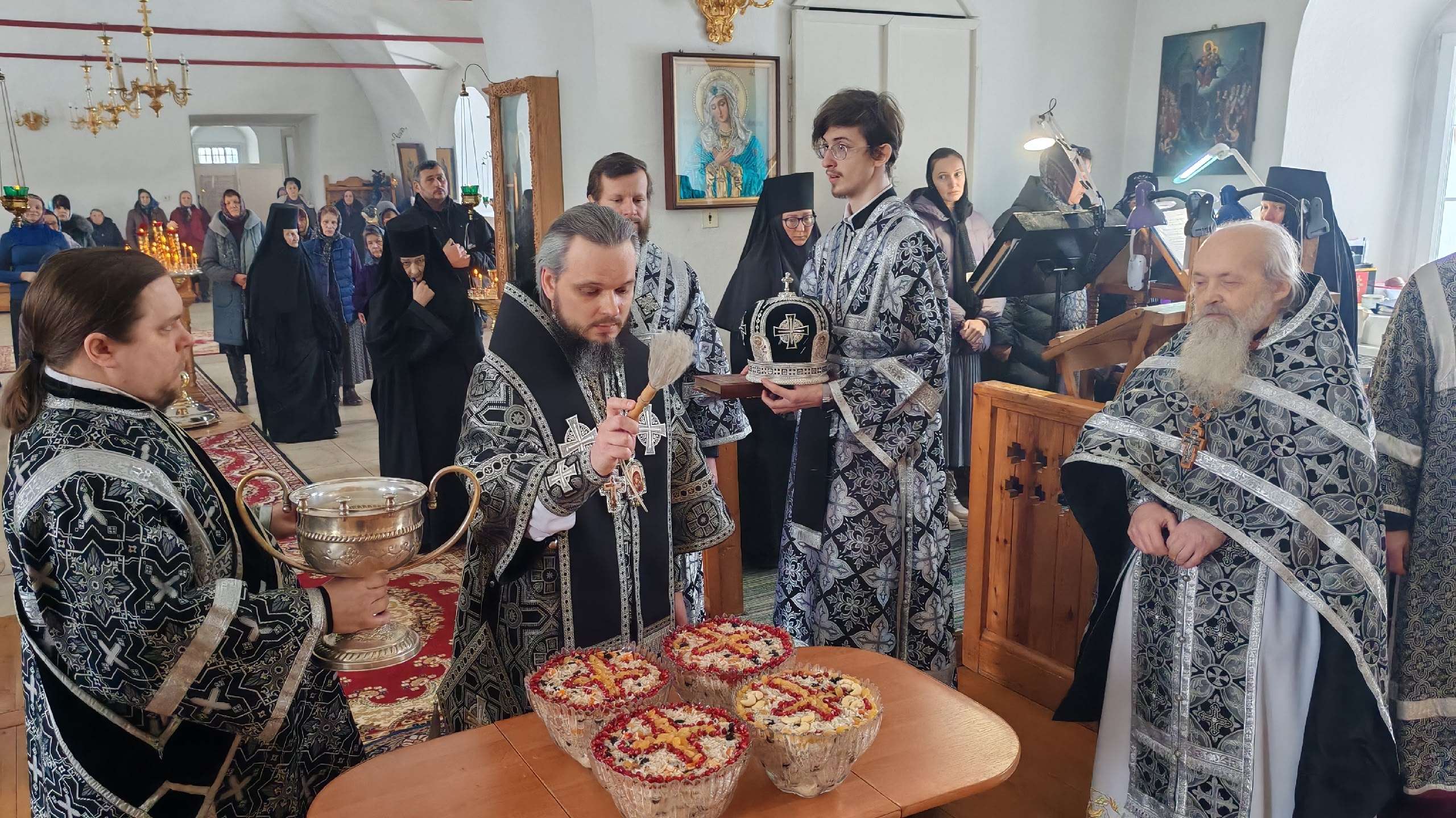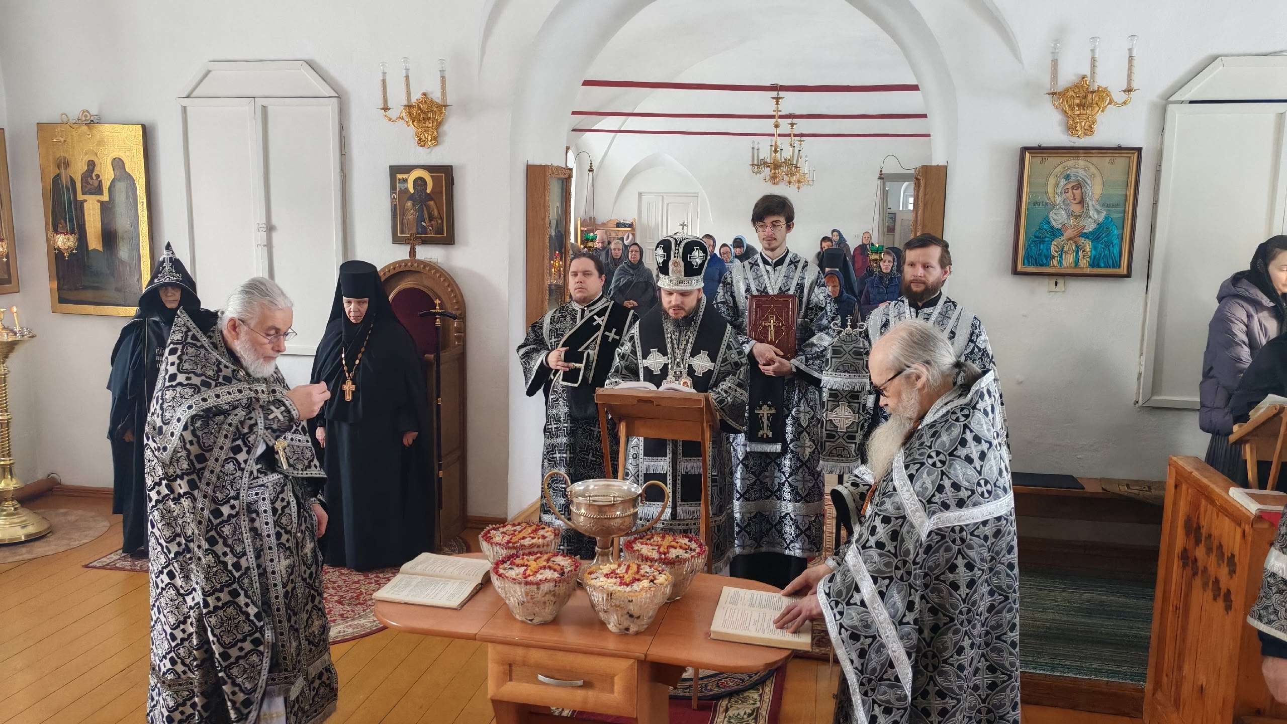 По завершении Литургии архипастырем и духовенством монастыря был совершен чин молебного пения великомученику Феодору Тирону и чин благословения колива.