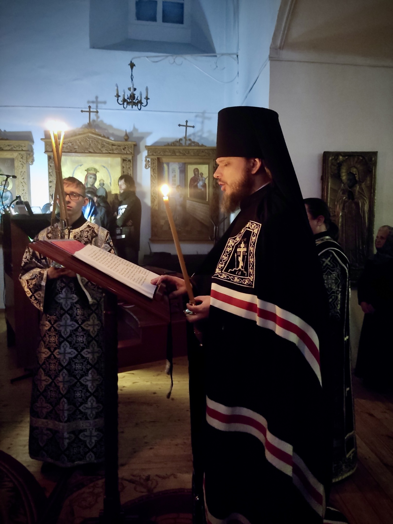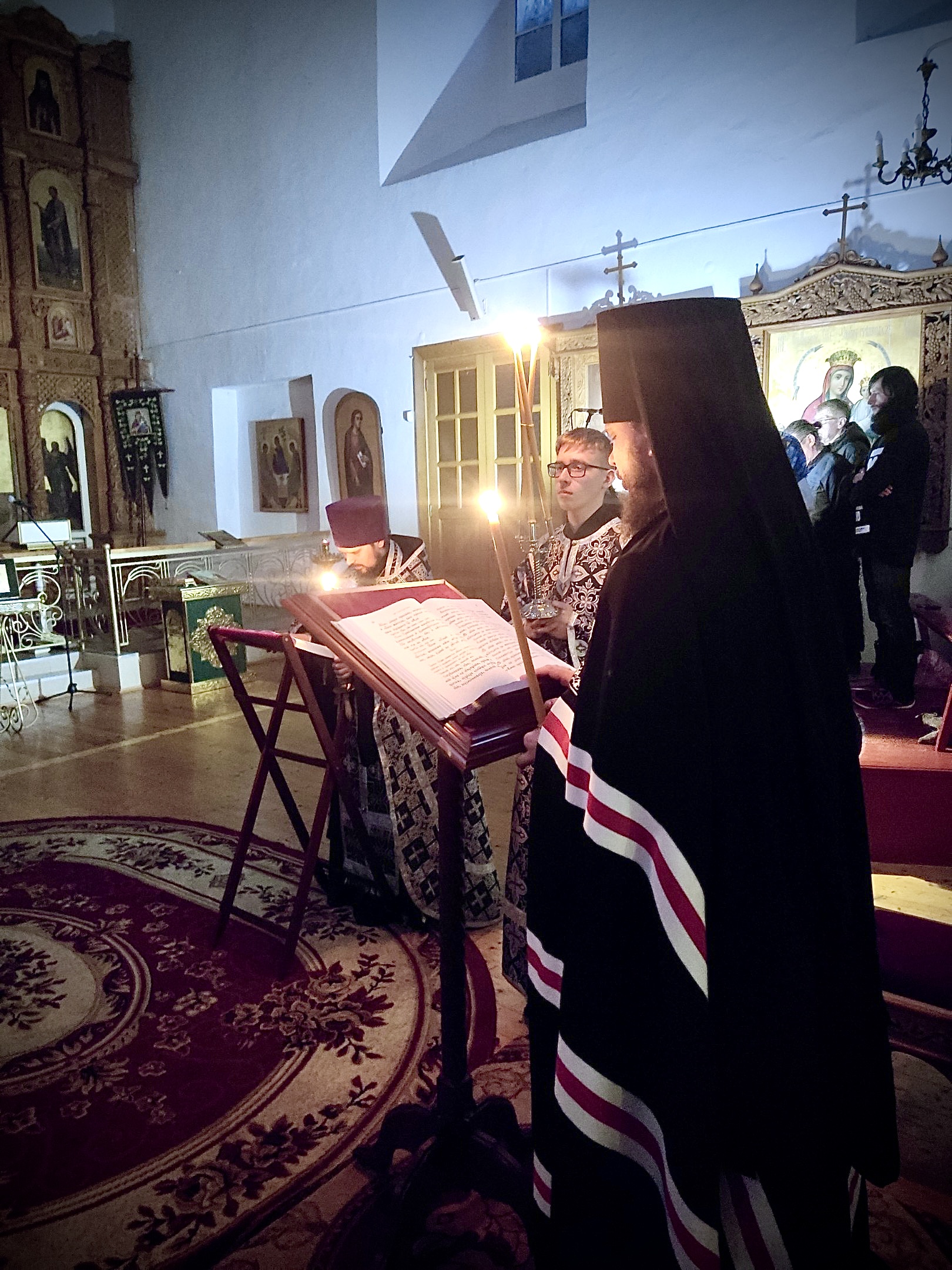 Вечером 25 марта 2026 года, в канун четверга 5-й Седмицы Великого поста, Епископ Вяземский и Гагаринский Алексий совершил утреню четвертка с чтением Великого покаянного канона преподобного Андрея Критского и жития преподобной Марии Египетской («Мариино стояние») в Свято-Троицком соборе города Вязьмы.