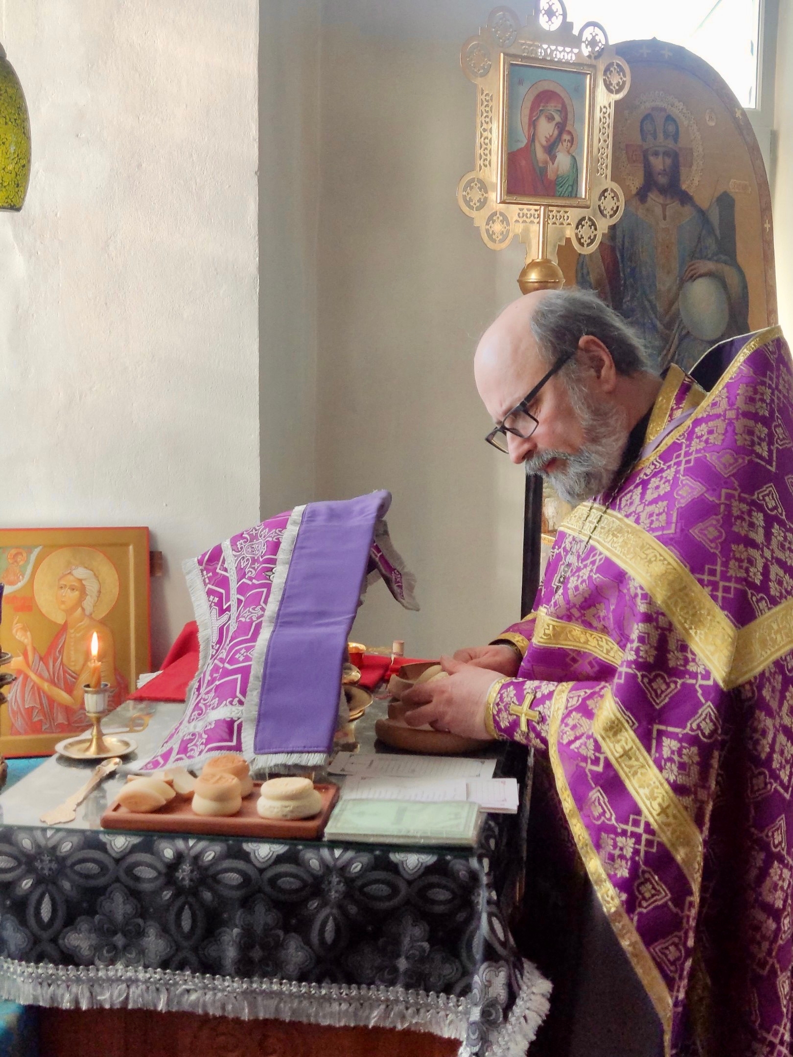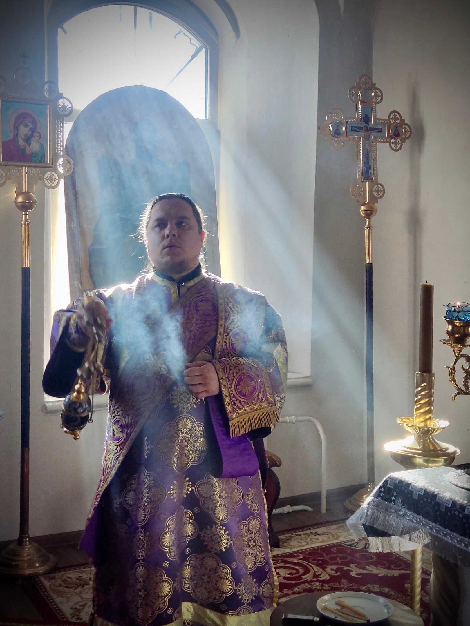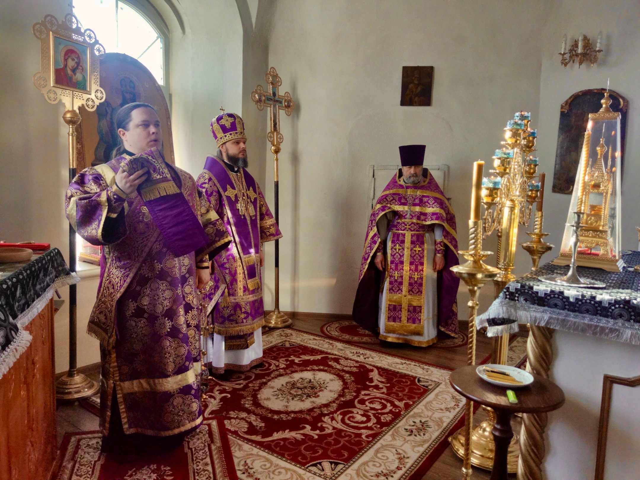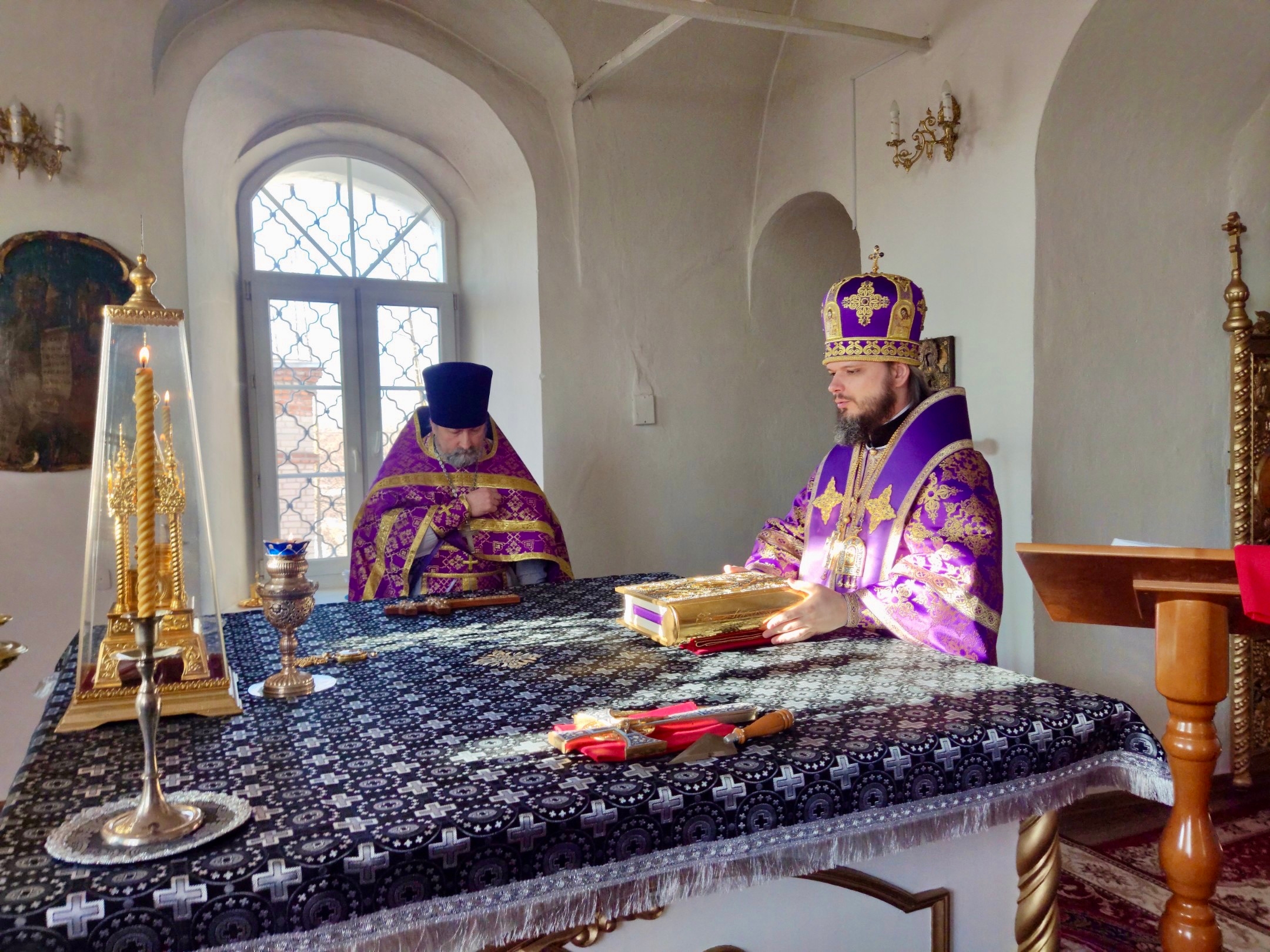 Его Преосвященству сослужили секретарь Вяземского епархиального управления протоиерей Олег Переверзев , диакон Евгений Ткач.