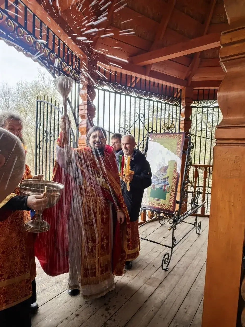 В часовне был отслужен водосвятный молебен. Иерей Александр Курмелев обратился к присутствующим к поздравлением, а также рассказал историю праздника и данного источника.
