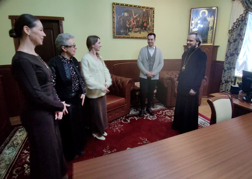 2 марта 2026 года епискп яземский Гагаринский Алексий с сотрудниками епархиального управления поздравили с днём рождения руководителя Молодежно-миссионерского отдела и Отдела по взаимодействию Церкви с обществом и СМИ Сарибекяна Д.Т.