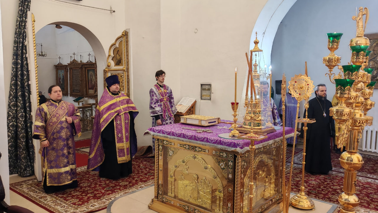 28 февраля 2026 года, в канун Недели 1-й Великого поста, Торжества Православия, епископ Вяземский и Гагаринский совершил Всенощное бдение в Свято-Троицком кафедральном соборе города Вязьмы.