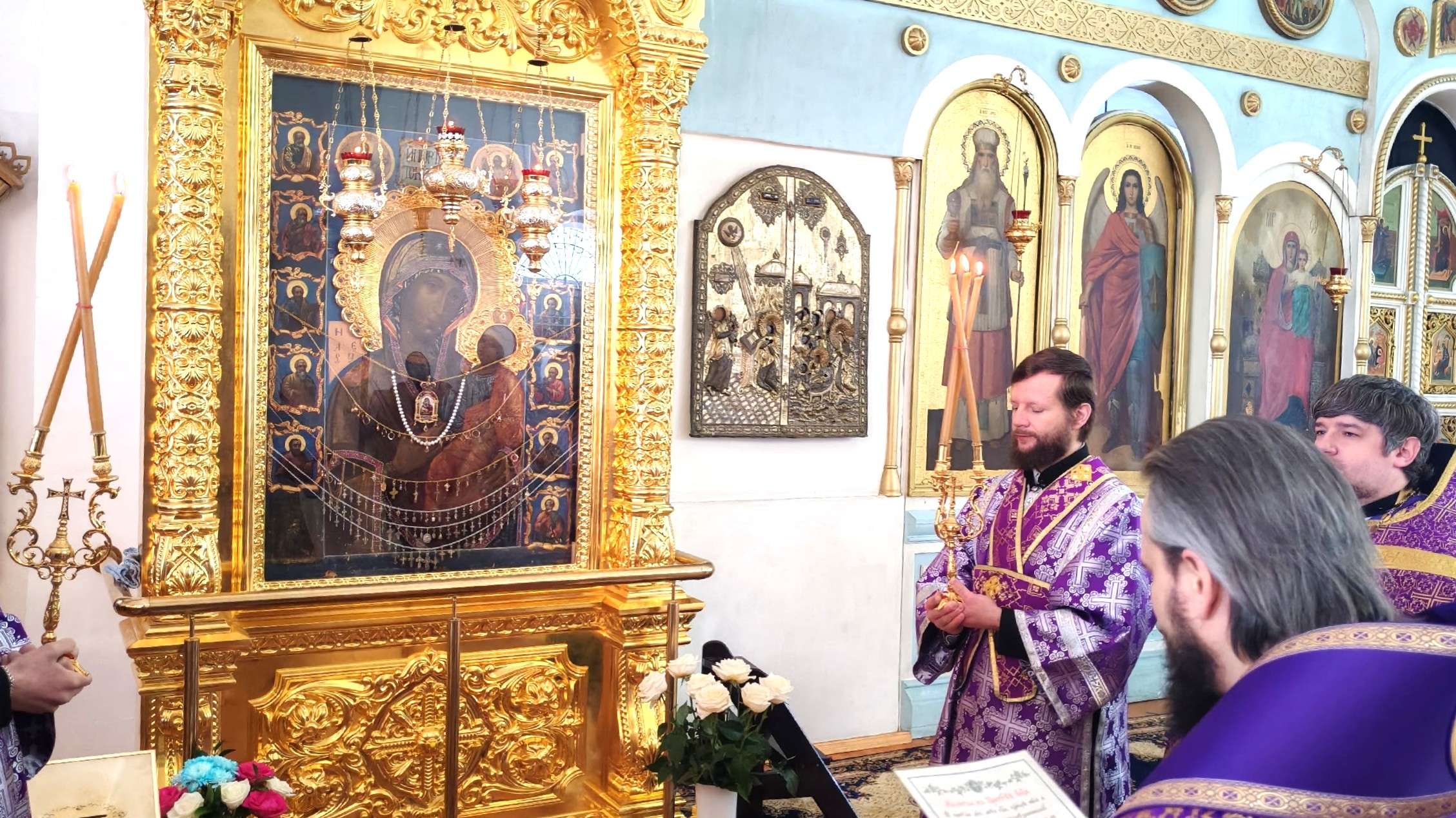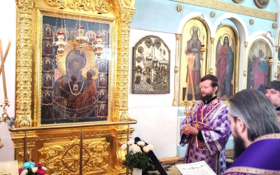 Перед образом чтимой Иверской иконы Божией Матери Владыка и духовенство совершили славление.