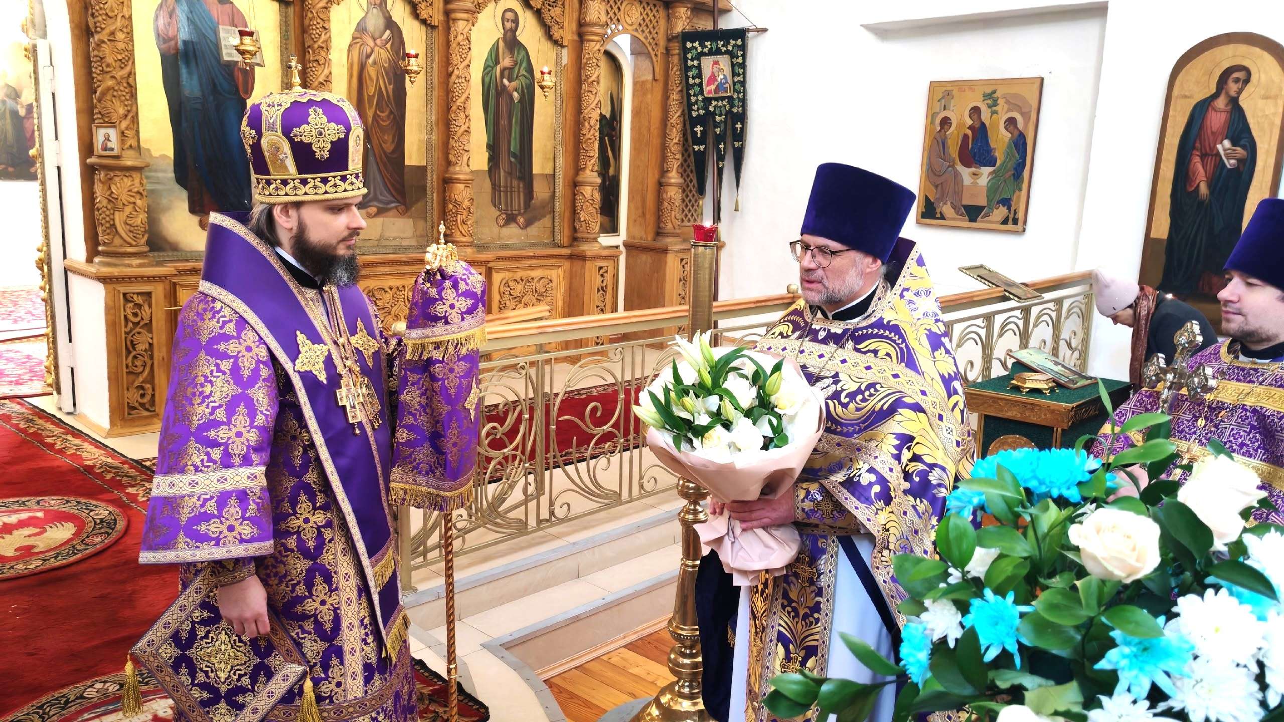 По случаю тезоименитства архипастыря благочинный Вяземского округа отец Валерий от лица клириков епархии и верующих поздравил Владыку, пожелав ему крепости духовной и телесной в своем служении.