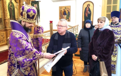 В ответном слове Владыка обратился ко всем присутствующим с проповедью, поблагодарив собравшихся за совместные молитвы и поздравления.